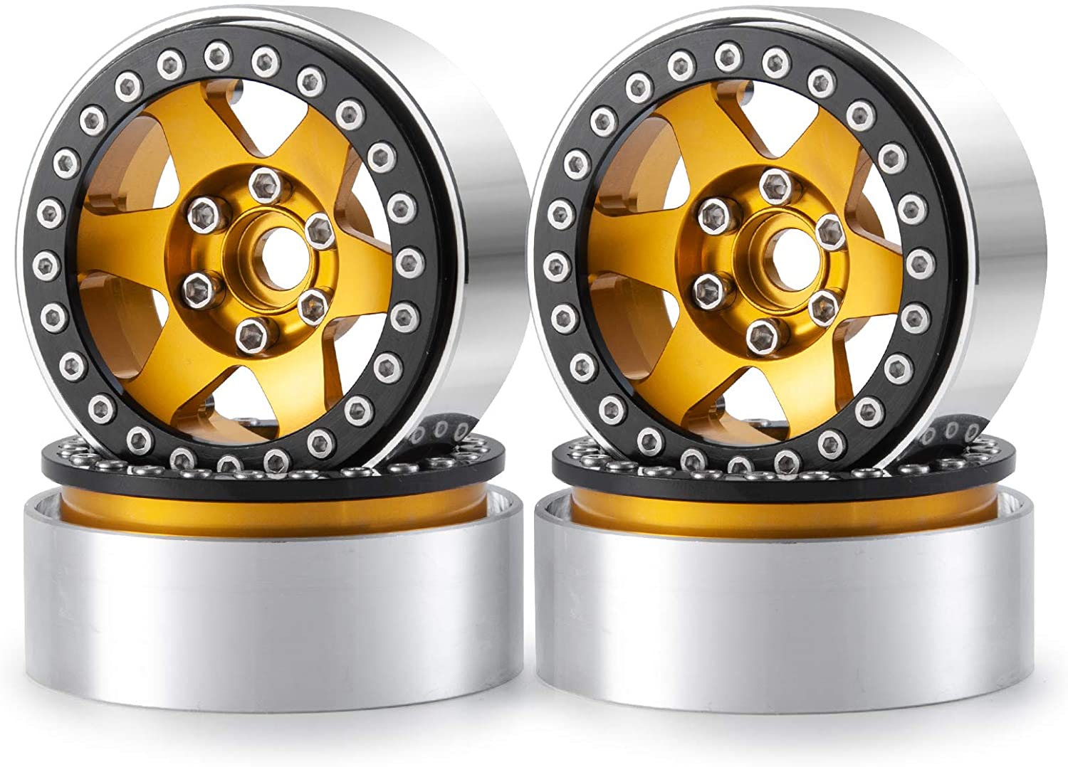 Que-T 4pcs 1.9inch Beadlock Wheel Rims, Metal Wheel Hub for 1/10 RC Axial SCX10 90046 AXI03007 TRX4 CC01 RC Car (Yellow & Black)