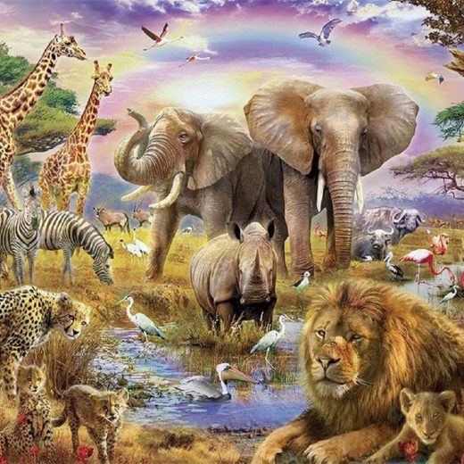 Queenie 1000 Pieces African Jungle Animals Forest Beasts Rainbow Sunset Landscape Kids Learning Cognition Toys Adults Brain Teasers Games Wooden Intelligence Jigsaw Puzzles