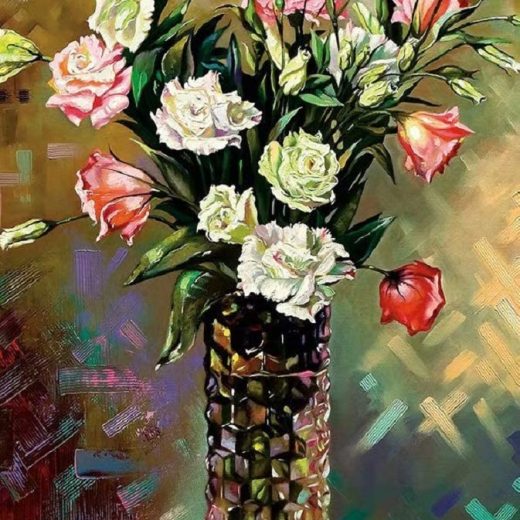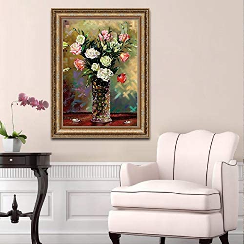 Queenie Colorful Art 1000 Piece Quiet Time Abstract Flowers in The Vase Oil Painting Relaxed Mood Brain Teasers Toys Wooden Grown-Up Jigsaw Puzzles for Home Photo Frame Decoration