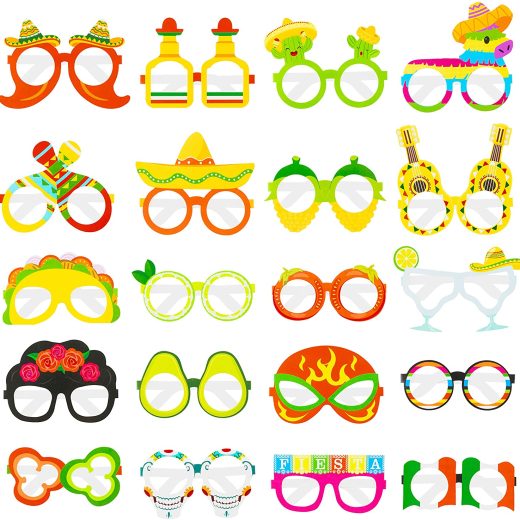 R HORSE 20PCS Fiesta Paper Eyeglasses Set Features: Made of high-quality thick cardboard, high-definition printing, no fading, no chemical smell, comfortable to wear, suitable for parties or even all day. Unique Mexican holiday themes including cactus, chili, piñata, tacos, corn, guitar, sombrero, maracas and margaritas, make your party full of joy and make your guests amazed. Material: Paper Package includes: 20 x Fiesta Paper Eyeglasses