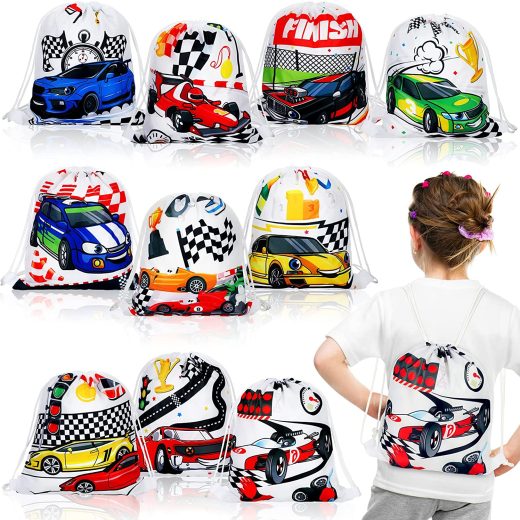 Race Car Party Gifts Bags Racing Car Drawstring Backpack Car Favor Bags Car Drawstring Bag Car Goodie Candy Bags Birthday Party Supplies for Kids Boys (20 Pieces)