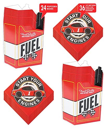 Race Car Party Supplies – Racing Fuel Can Popcorn Boxes and Napkins (Serves 24)