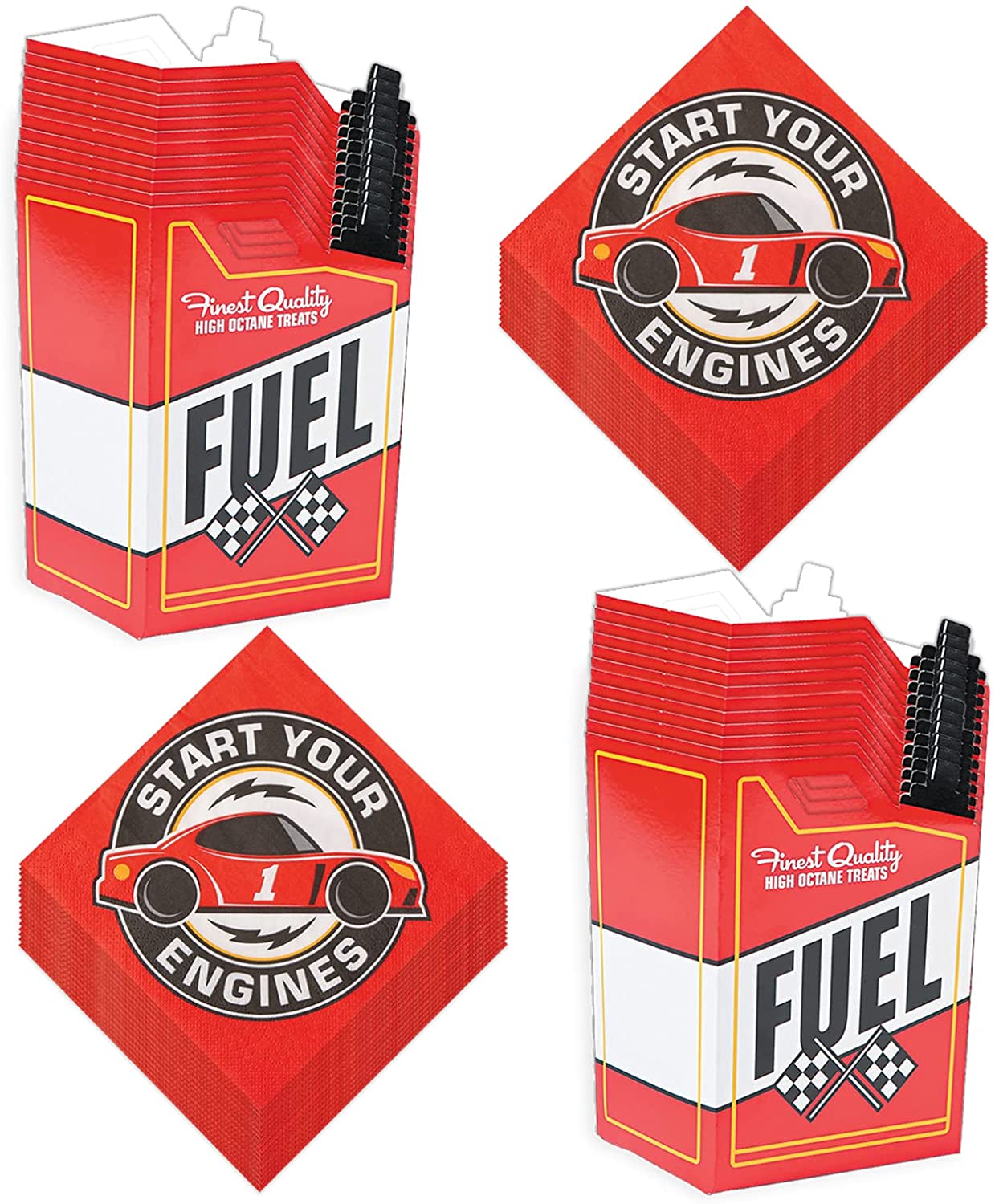 Start your engines with this Racing Fuel Popcorn Box & Napkin Set! Napkins with Start Your Engines text with fun fueling can popcorn boxes all in a…