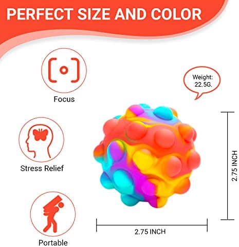 RadBizz Push Pop Bubble Fidget Sensory Toy Ball – for Autism, Stress, Anxiety – Kids and Adults (Multicolor Ball)