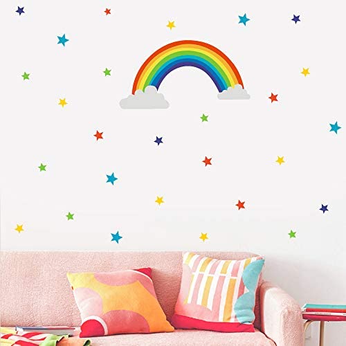 Rainbow and Stars Wall Decals, Peel and Stick Removable Wall Stickers for Kids Nursery Bedroom Living Room,Wall Décor