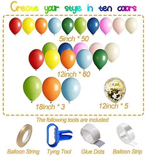 Rainbow Balloon Garland Arch Kit,122pcs Colourful Balloons Garland Kit include Gold Confetti Balloons Set for Birthday Wedding Baby Shower Circus Fiesta