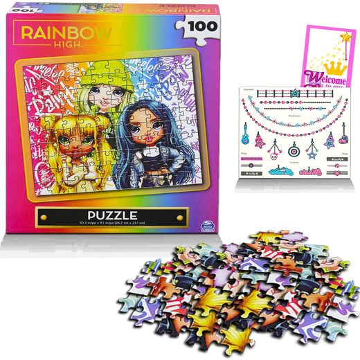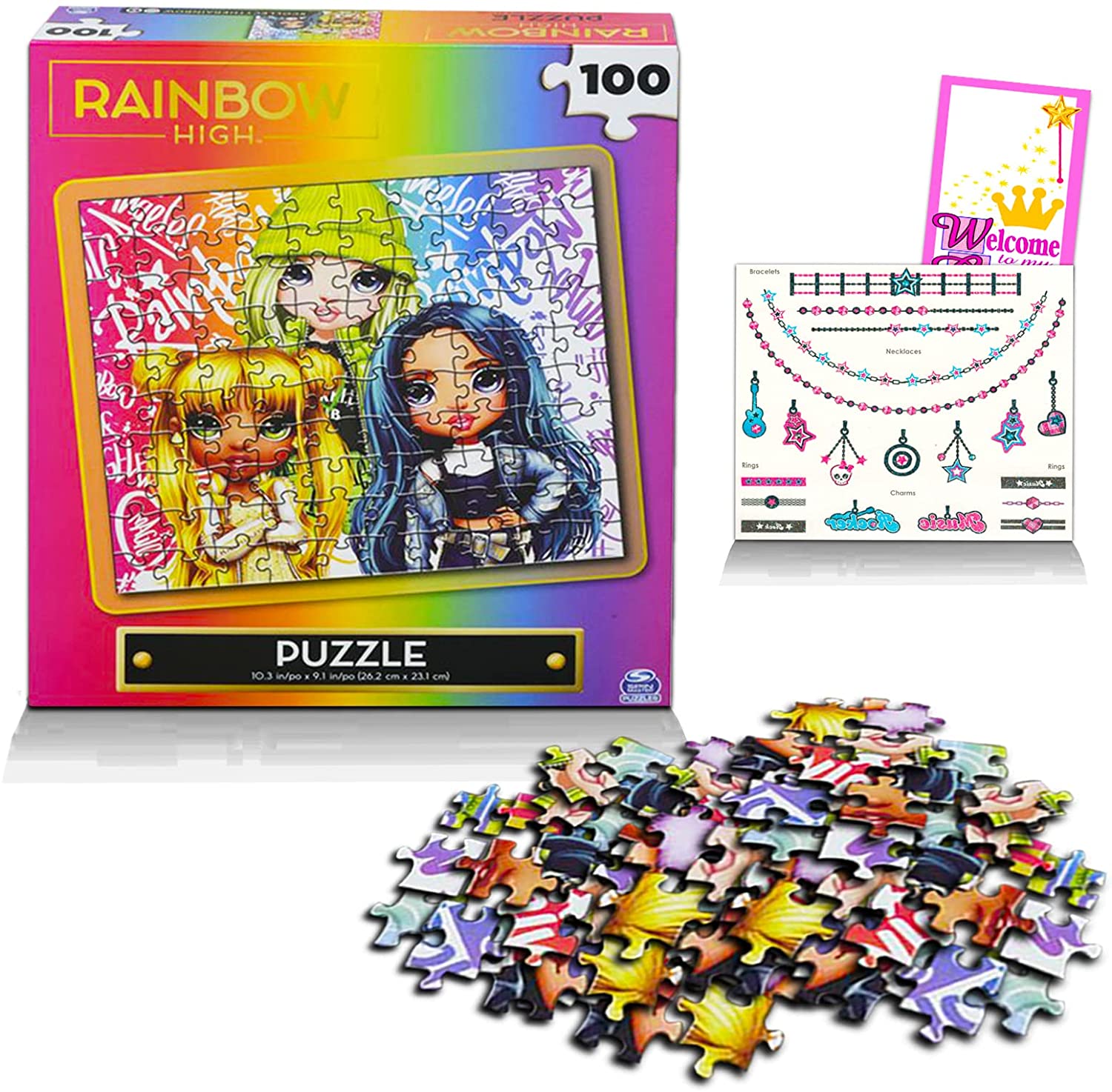 Rainbow High Premier 100 Pc Puzzle Set for Kids – Rainbow High Party Supplies Bundle with 1 Rainbow High Puzzle and Glitter Jewelry Tattoos (Rainbow High Party Favors Styles May Vary)