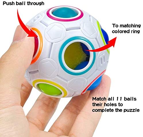 Rainbow Puzzle Ball with 11 Rainbow Colors, Puzzle Ball with Pouch Color-Matching Puzzle Game Fidget Toy, Stress Reliever Rainbow Puzzle Ball Brain Teaser for Kids and Adults