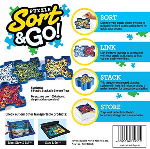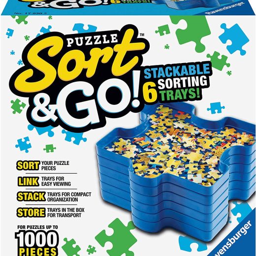 Ravensburger Sort and Go Jigsaw Puzzle Accessory – Sturdy and Easy to Use Plastic Puzzle Shaped Sorting Trays to Organize Puzzles Up to 1000 Pieces, Blue