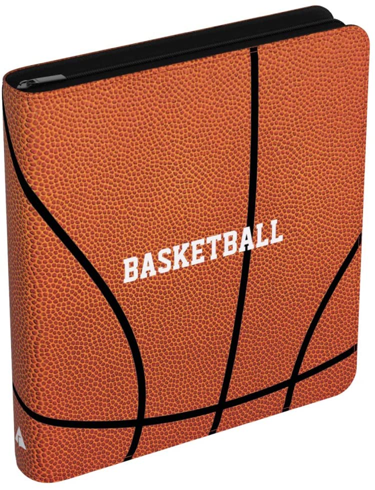 [Premium Build]: Made with authentic leather similar to real basketball texture. [Fit 720 Cards]: Store your entire collection in this 9-Pocket binder. Keep your prized collection organized and in mint condition all times. [Ultimate Protection]: Quality Zipper seals the binder, keeping cards protected and intacted at all times. Soft EVA PU leather, water or raindrops wont seep through. [Quality Pages]: Made from archival-safe, acid-free non-PVC material. See through every detail and artwork, no need of to take cards out of the pockets. Each pocket can fit 2 cards with sleeves on. [For Basketball Fans]: Great gift choice for basketball fans.Includes 40 sleeves, easily add or remove sheets if necessary.