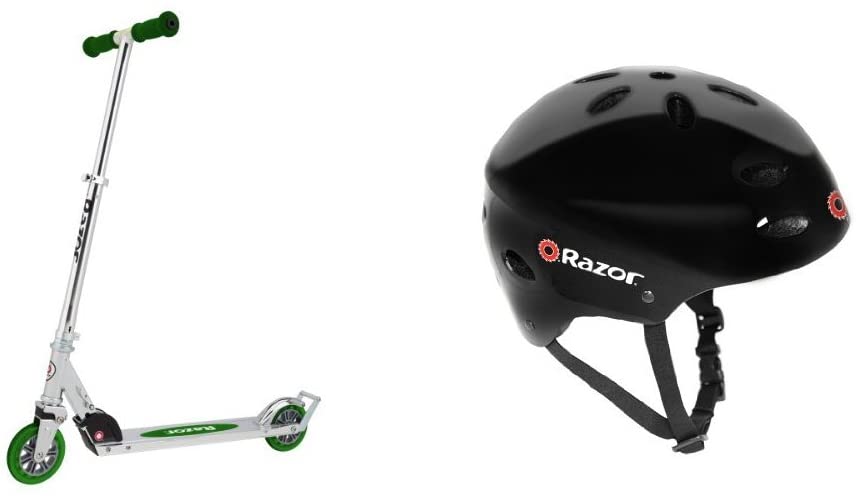Razor A3 Kick Scooter, Green, Frustration Free Packaging w/ Black Helmet