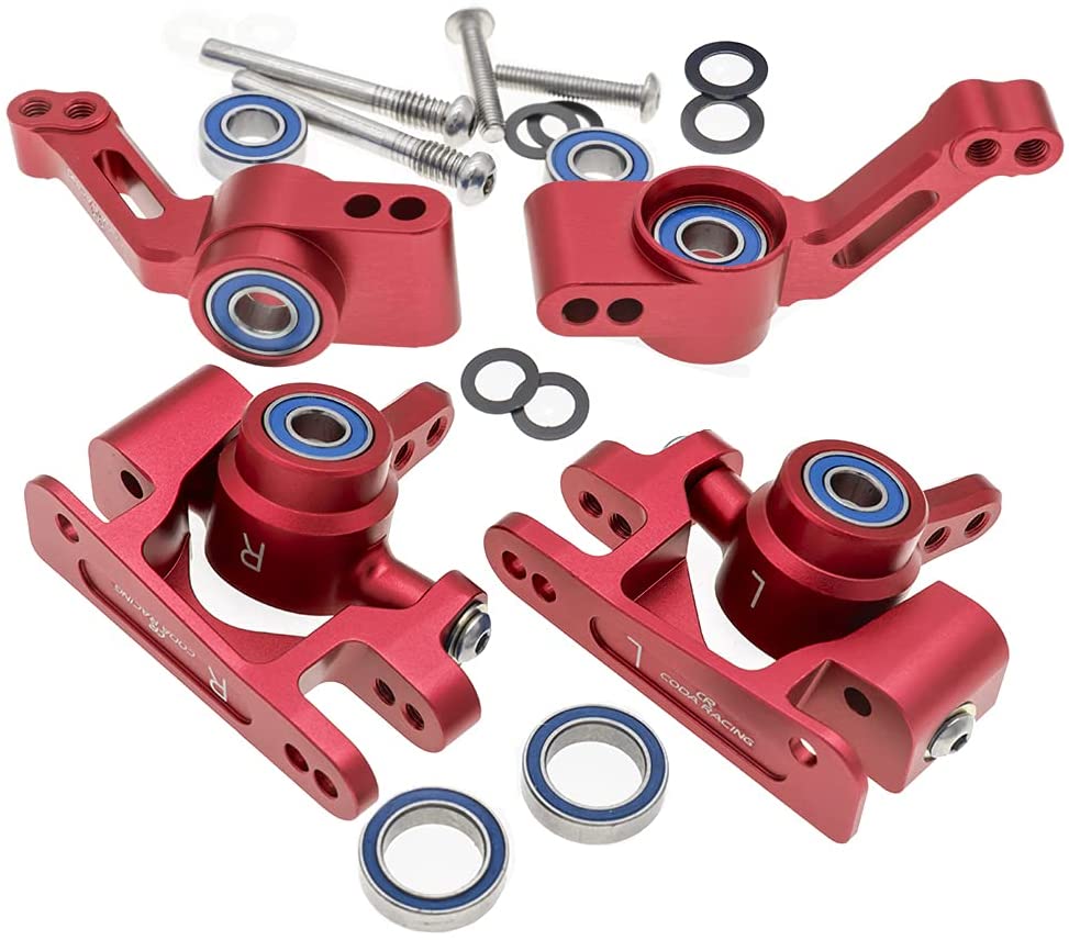 Fits: Traxxas 1/10 Slash 4X4 ,1/10 Stampede 4X4,1/10 Rustler 4X4,1/10 Slash 4X4 VXL Ultimate Platinum,1/10 Stampede 4X4 VXL,1/10 Rustler 4X4 VXL.ST Rally. Precision CNC machined,Anodized 6061-T6 aluminum for lightweight and durable performance. Replacement of stock # 6832 Caster blocks,# 6837 Steering blocks,#1952 Stub axle carriers,# 5119 10x15x4mm bearings,# 5116 5x11x4mm bearings Color:Red Package Included: 2 x Steering blocks(L/R) 2 x Caster blocks(L/R) 2 x Stub axle carriers(L/R) 6 x 5x11x4mm bearings 2 x 10x15x4mm bearings 6 x PTFE washers 4 x Suspension Screw Pins 4 x Bushing Sleeves 6 x Screws 4 x Washers