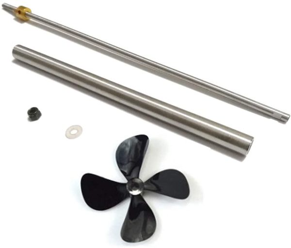 Rc Boat Drive Shaft with Sleeve and 4 Vanes 50mm Diameter CW Propeller Hawk Hobby (250mm Shaft + CCW Prop)