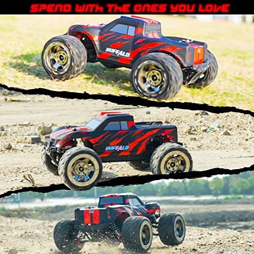 Discover a New Fun – RC MONSTER 162-1A hobby offroad rc car is designed for hobby-level users depend on more professional design and better high-quality material. 2*7.4v 1100mah durable capacity batteries prolong your fun to 55mins(Depends on how you play). Run through the night with a RED LED light that adds realistic off-road looks and function. This trucks are perfect gifts for birthdays, Christmas, and other holidays.