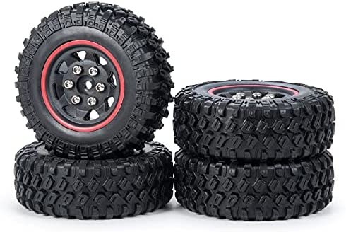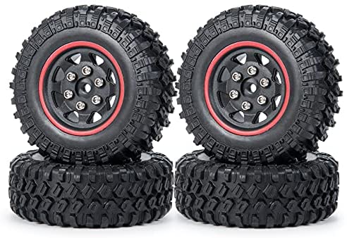 Features: 1.Easy to install and more durable. 2.The heat dissipation ability is strong.Specifications: Tires Material: Rubber. Wheel Rim Material: PlasticWeight: 16g/pcs. Outer Diameter: 48.5mm.Width: 17mm.Center Aperture: 3mm. Color: Black/Red.Suitable for: 1/24 Axial SCX24 AXI90081 AXI00001 AXI00002 RC Crawler Car. Shipping package: 4pcs 1.0 Beadlock Wheel Rim and Tires