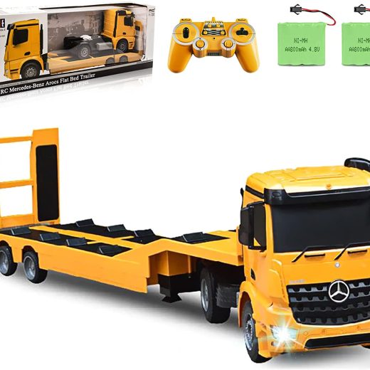 [ Ready to Run ] Comes in a exquisite package box which is best choice as Birthday&Christmas gift, includes everything you need! The Truck,Trailer, 2.4Ghz Transmitter, 2*4.8v 800Mah Rechargeable batteries, USB Charging cables, The transmitter requires 2 AA batteries (not included).Just get ready to have fun with it!