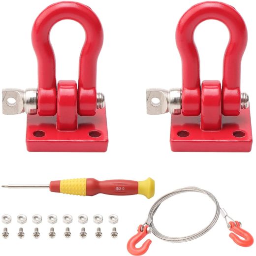 Specifications: Material: metal. Shackle Size: Approx. 13mm x 13mm/0.51 x 0.51 Tow Rope Total Length: Approx. 90mm / 3.54 Applications: Suit for SCX10 90046 90047 RC4WD D90 D110 TF2 Tamiya CC01 HILUX WRAITH TUNDRA 1:10 RC Rock Crawler. Package Included: 2 x RC Trailer Shackles 8 x Screws 8 x Nuts 1 x RC Trailer Tow Rope with Hooks 1 x Screwdriver