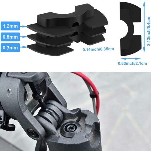 Great shopping experience!:GLDYTIMES FECFEC Scooter 3 Pcs Rubber Vibration Dampers and Rear Fender Support Frame Protection Frame replacement for most models Xiaomi MIJIA M365, Bird, Limebike, Segway-Ninebot Electric scooter etc. Effectively shockproof and durable and practical.· The damper is made of rubber for the folding stem, which otherwise will wear from vibrations. Just insert the damper into the hinge to stay in place. The flexible material will reduce some of the vibrations.· The new type Frame is made of high quality Polymer resin, more durable and sturdy! They are made of non-slip soft glue to reduce friction on the handlebars and feel great. Product details:Dimensions: 0.6 0.8 1.2 mm thickness Material: Rubber, Aluminium alloyWeight: 89gpacking list:· 1 Rear Fender Support Frame Protection Frame· 3 sizes of shock-proof damping rubber.Service Protection Regarding product installation, return, and replacement services, please contact our customer service first! We are committed to solving your problems. Before buying, Please go to the only designated store in the store GLDYTIMES FEC 100%. Perfect service system makes you buy more assured.