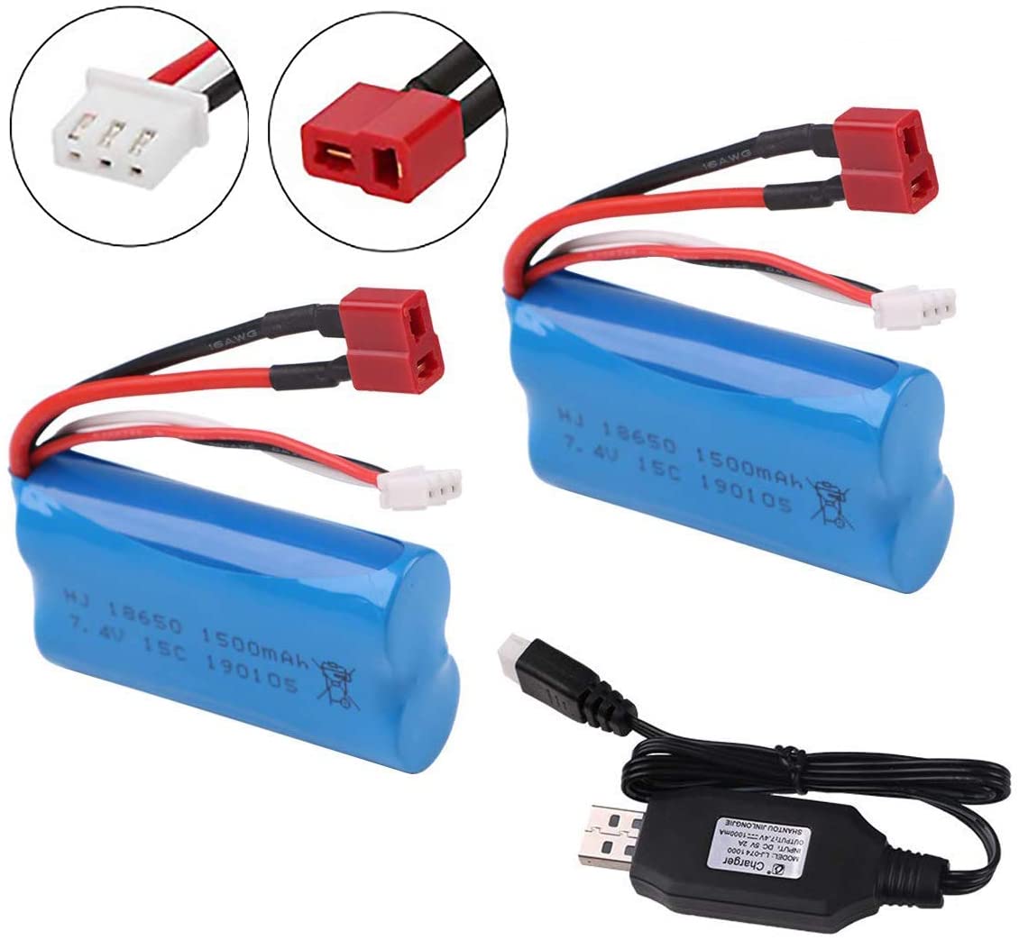 Rechargeable Lithium Battery 7.4V 1500mAh for WLtoys 4WD Rc Cars 12403 12401 12402 12404 12428 Spare Part Replacement with Battery Charger (12401 12402 12403 12404 12428 Series)