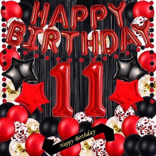 Red 11ST Birthday Party Decorations Supplies Red theme 16inch Red Foil Happy Birthday Balloons Banner Happy Birthday sash Foil Black Curtains Foil Balloons Number Red 11 Risehy