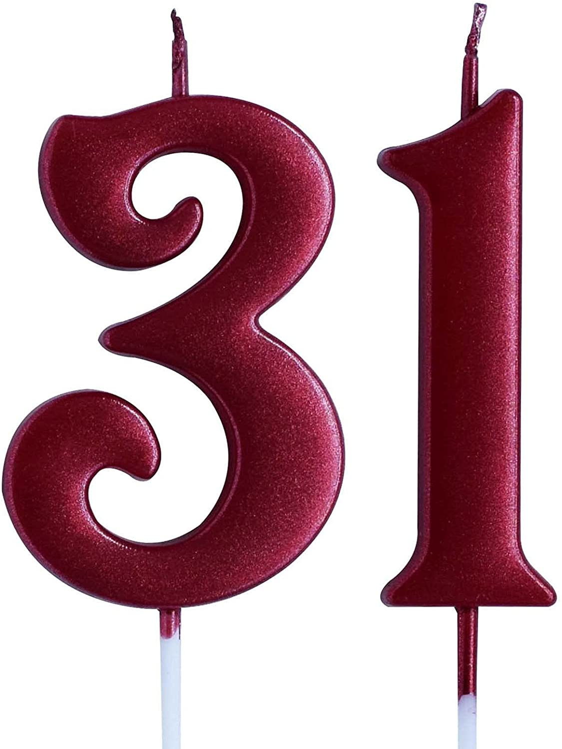 Red 31st Birthday Candle, Number 31 Years Old Candles Cake Topper, Woman Or Man Party Decorations, Supplies