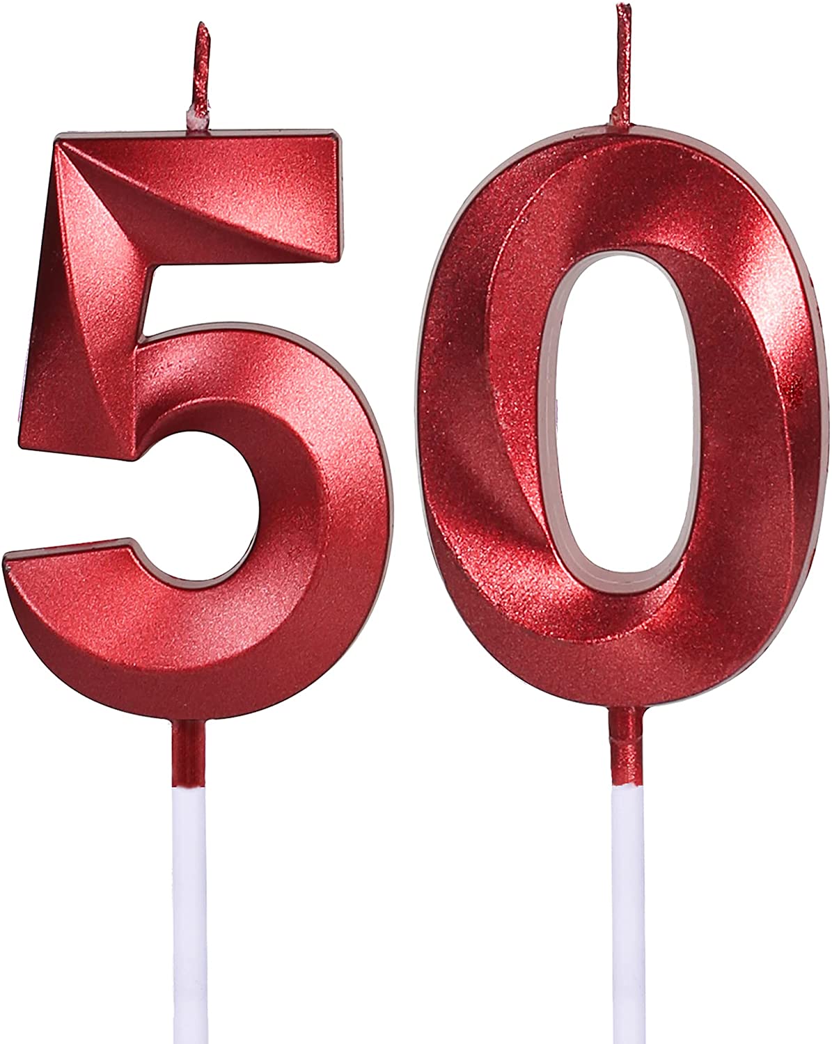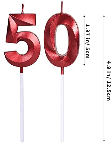Red 50th Birthday Candles for Cakes, Number 50 5 Glitter Candle Cake Topper for Party Anniversary Wedding Celebration Decoration