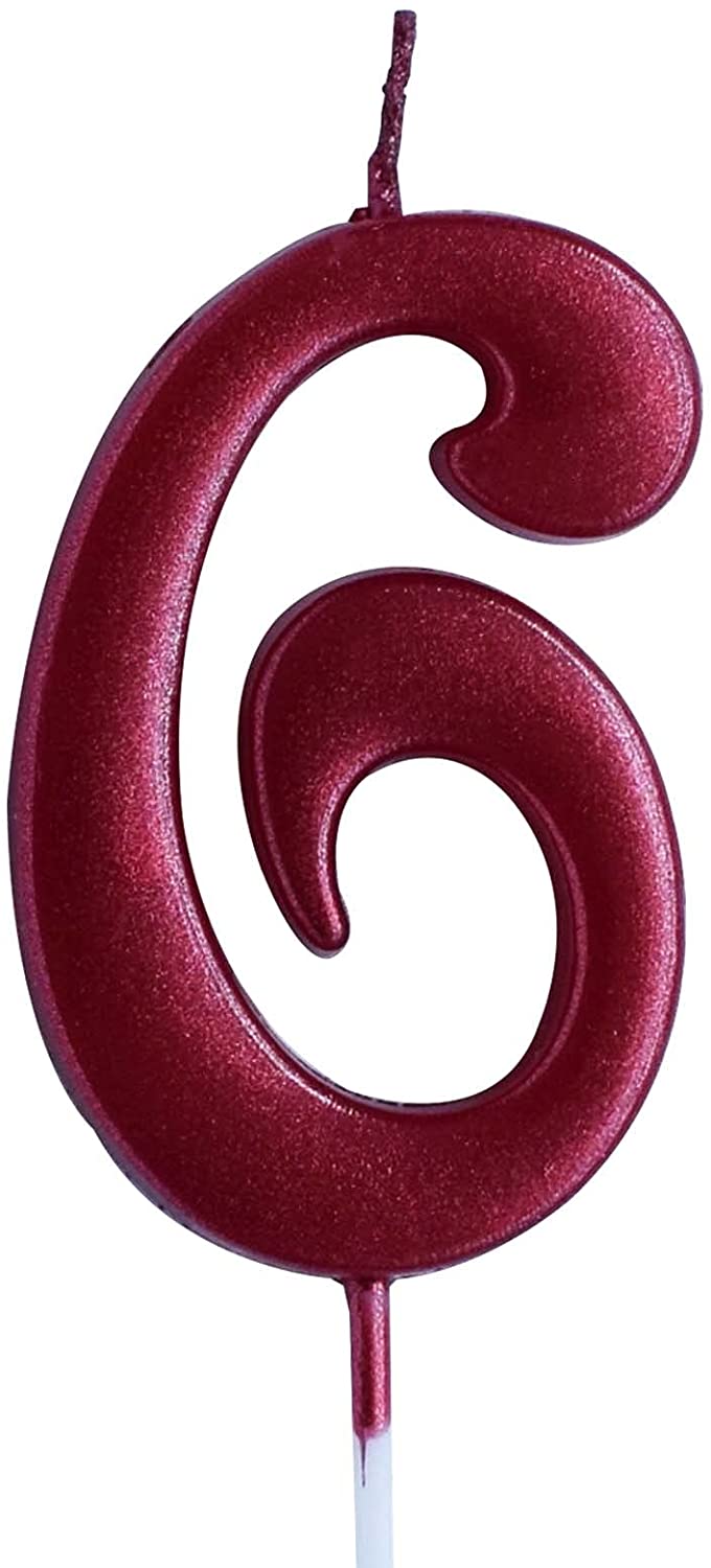 Red 6th Birthday Candle, Number 6 Years Old Candles Cake Topper, Boy Or Girl Party Decorations, Supplies