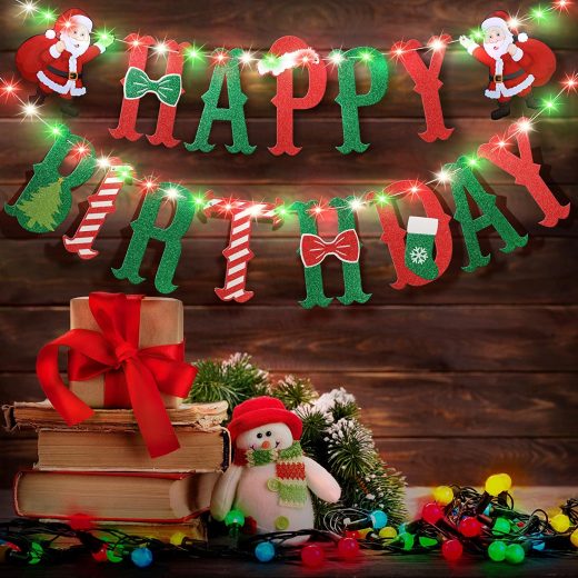 Red and Green Birthday Banner LightThe birthday banner with light is full use of winter decorative elements, happy birthday decoration for kids bir…