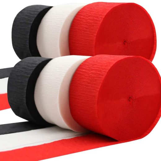 BllalaLab Arts & Crafts Package Include: total 6 Count of Colorful Party Crepe Paper Streamers in 3 different colors in this value pack. Red Color * 2 Rolls Black Color * 2 Rolls White Color * 2 Rolls Dimensions: Each roll measures 4.5* 2500 cm/ 1.75 inch* 82 Feet Material: Made with premium quality crepe paper, recyclable and eco-friendly. Occasions: Suitable for holidays all year around, Party Decoration Must have!! Use them for Christmas, Thanks Giving, Wedding, Baby Shower, Bridal Shower, Birthday Parties, Valentine’s Day, Easter, Halloween, and any celebration of yours!! 100% Satisfaction Guarantee! We value our customers and please let us know if our product does not meet your expectations or if there are any problems. And if you like our product, please generously let us know!