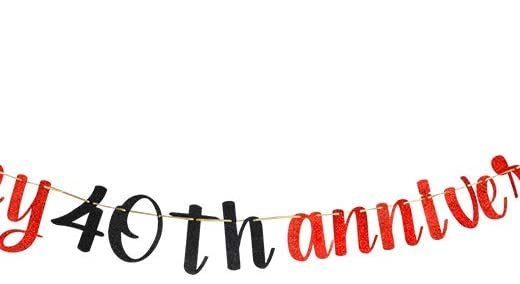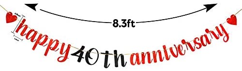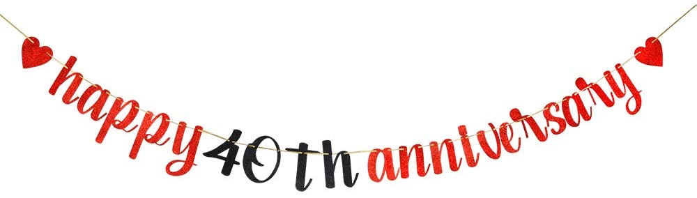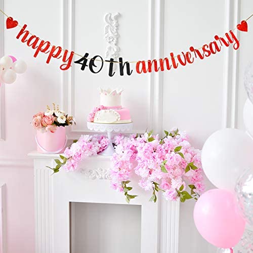 Red Happy 40th Anniversary Banner, 40th Weeding Anniversary Decorations, 40th Anniversary Theme Party Supplies