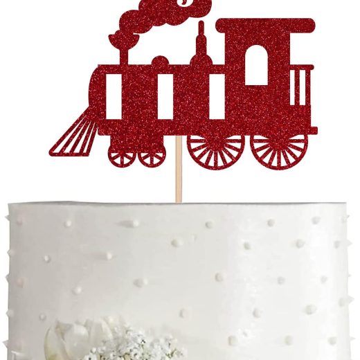 Red Train 5th Birthday Cake Topper, Red Glitter Boy Girl 5 Years Birthday Party Decoration