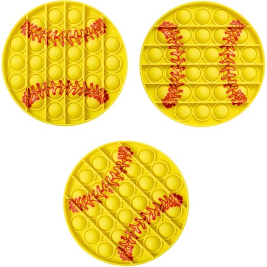 Redding Co Push Bubbles Pop Fidget Sensory Toy | ADHD Anxiety Autism and Stress Relief Silicone Squeeze Toy | Quality Holiday for Boys Kids Birthday Party Favor Toy (Softball 3-Pack)