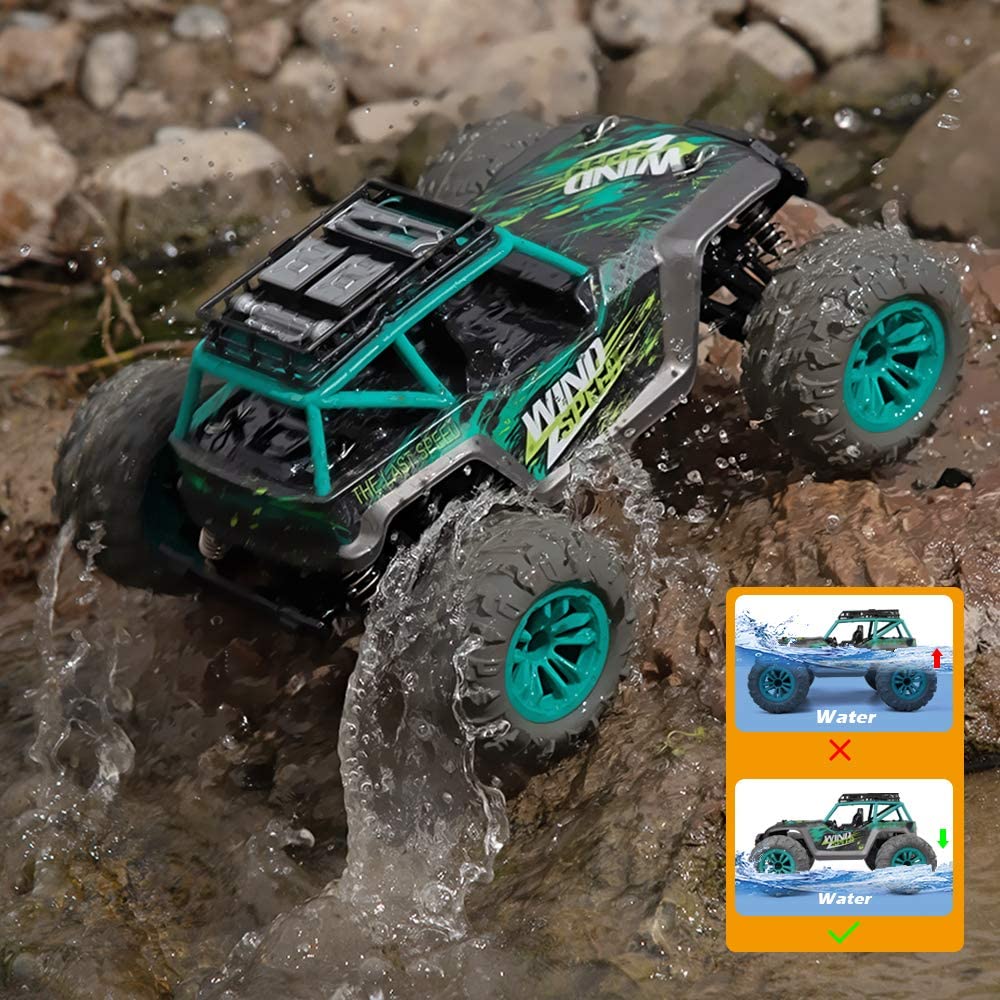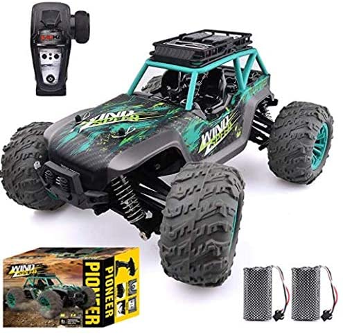 36KM/H Super Fast & 4WD All Terrain RC Truck – With powerful motor, this remote-controlled truck can drive at an amazing speed of 36km/h. Featured with 4WD and supported by 4 independent suspensions, the RTR remote control truck can drive freely on rugged terrain such as roads, grass, sand, and gravel roads. It is absolutely the best choice for any level monster RC trucks enthusiast.