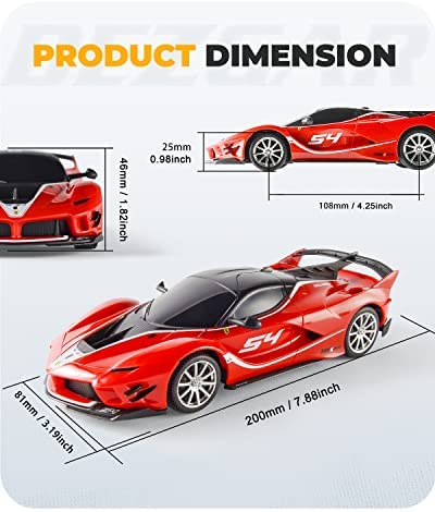 OFFICIALLY LICENSED BY FERRARI 1/24 scaled back on the real Ferrari FXX-K EVO; model ferrari measures in 20.25 x 8.65 x 5.12cm; great size for inside use. We strongly stands behind each item it designs and sells. Each product we sell has passed a rigorous testing process before landing at your door. These remote control cars are wonderful gifts for kids.