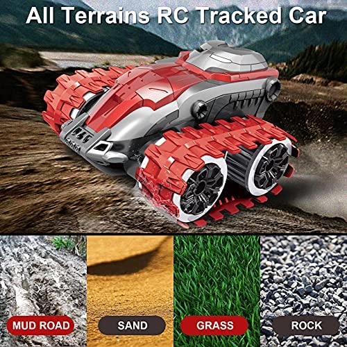 Remote Control Car, RC 2.4Ghz All Terrains Off Road Truck Tracked Car with Rechargeable Batteries for Boys Kids(Red)