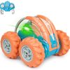 REMOTE CONTROL CARS FOR KIDSEquipped with 2.4Ghz transmitter and receiver, the RC car can becontrolled from a long distance. And it allows multiple kids to play together because of no signal interference.Double sides running, moving forward, backward, turning left, right, 360 degree tumbling flip for different playing experience on this electric remote control stunt car.Outdoor toys for kids ages 6-12.