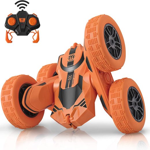 REMOTE CONTROL CARS FOR KIDSEquipped with 2.4Ghz transmitter and receiver, the RC car can becontrolled from a long distance. And it allows multiple kids to play together because of no signal interference.Double sides running, moving forward, backward, turning left, right, 360 degree tumbling flip for different playing experience on this electric remote control stunt car.Outdoor toys for kids ages 6-12.