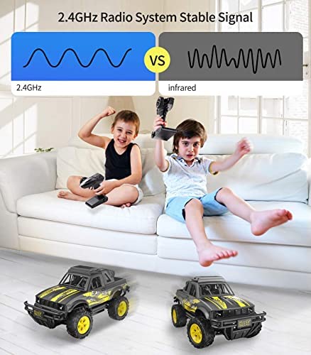 2x Rechargeable Batteries & Non-jamming Performance2x 7.1V 1200mAh Li-ion batteries for 36+min running.2.4GHz radio control system, stable signal, 165 feet of remote control distance, Suitable for multiplayer.