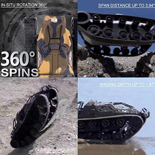 All-terrain RC Tank: 4WD RC tank is designed with powerful motor, which offers you the highest speed up to 15 km/h. With the unique tank wheel, it can easily run on the sand, glass and rock, making it an awesome off-road racing crawler, suits for playing indoors or outdoors.