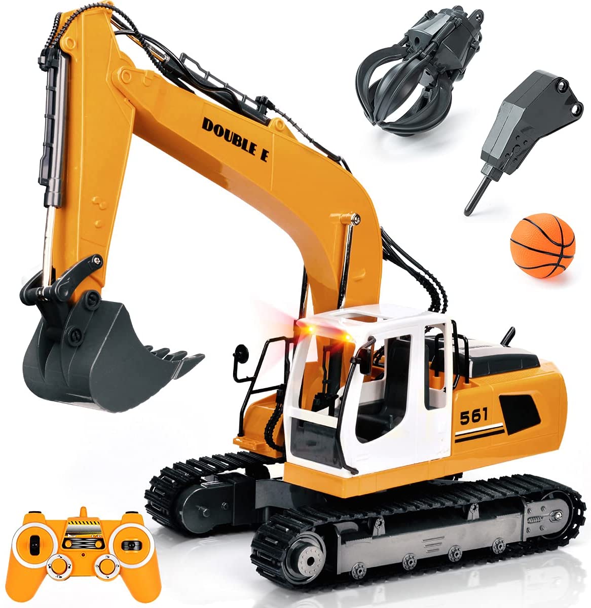 INCLUDES EVERYTHING: The DOUBLE E excavator toy includes everything you need! RC Excavator, 2.4Ghz Transmitter, 4.8v 800mAh Rechargeable battery for the truck, USB Charging cable. The transmitter requires 2 AA batteries (not included) Recommended age 8+.