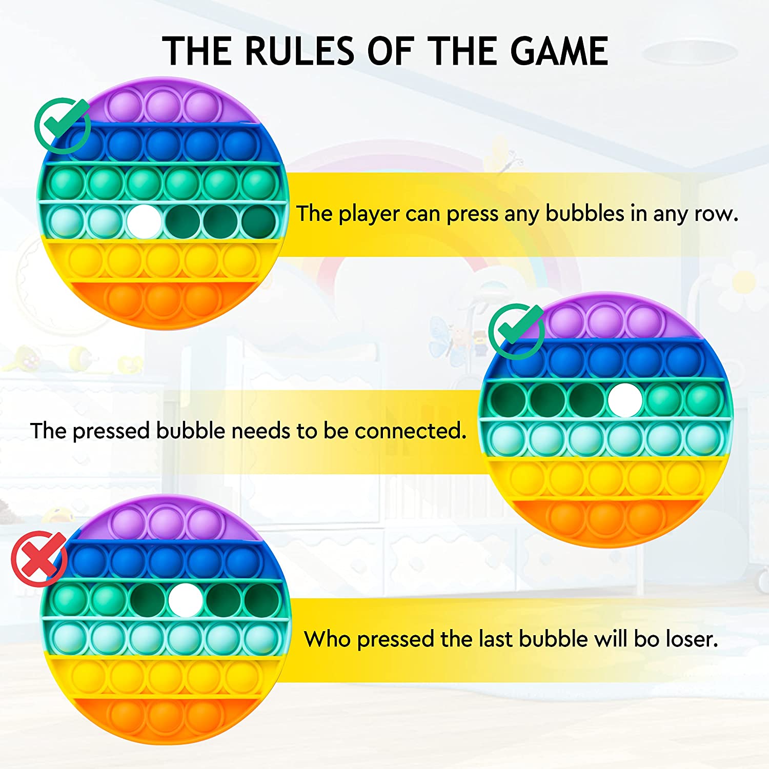 This pop bubble fidget toy is made of high quality silicone, safe, effectively relieve anxiety and stress.Lightweight, can be taken and played anywhere.Suitable for all kinds of people, office decompression, relieve fatigue.Just press the bubbles down and they make a slight popping sound; then flip it over and start again! washable and endlessly reusable too.Perfect gifts for your friends besties,families.Improve Brain PowerThis Pop Game will keep kids brainstorming, play the games according to the rules or your own rules to challenge yourself or quickly duel with opponents.Its a tactile and strategy game.its fun to listen a slight popping sound, always make people feel comfortable.Multi-functional productsCan be used as a coaster or decorative productFamily and children play together to promote the relationship between parents and children.You can play it as a multiplayer game by taking turns to press as many bubles as each player want until reaching the last bubble.This can help kids develop strategic and planning skills, as well as mental arithmetic and logical inference.Material: High quality Silicone, Very safe,will not cause any harm to humans .Package included:1 X Jumbo Bubble Fidget Toy