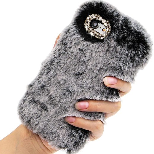 Girlyard Color Gray Material Fur, Rubber, Thermoplastic Polyurethane Screen Size 6.7 Inches Pattern Solid
