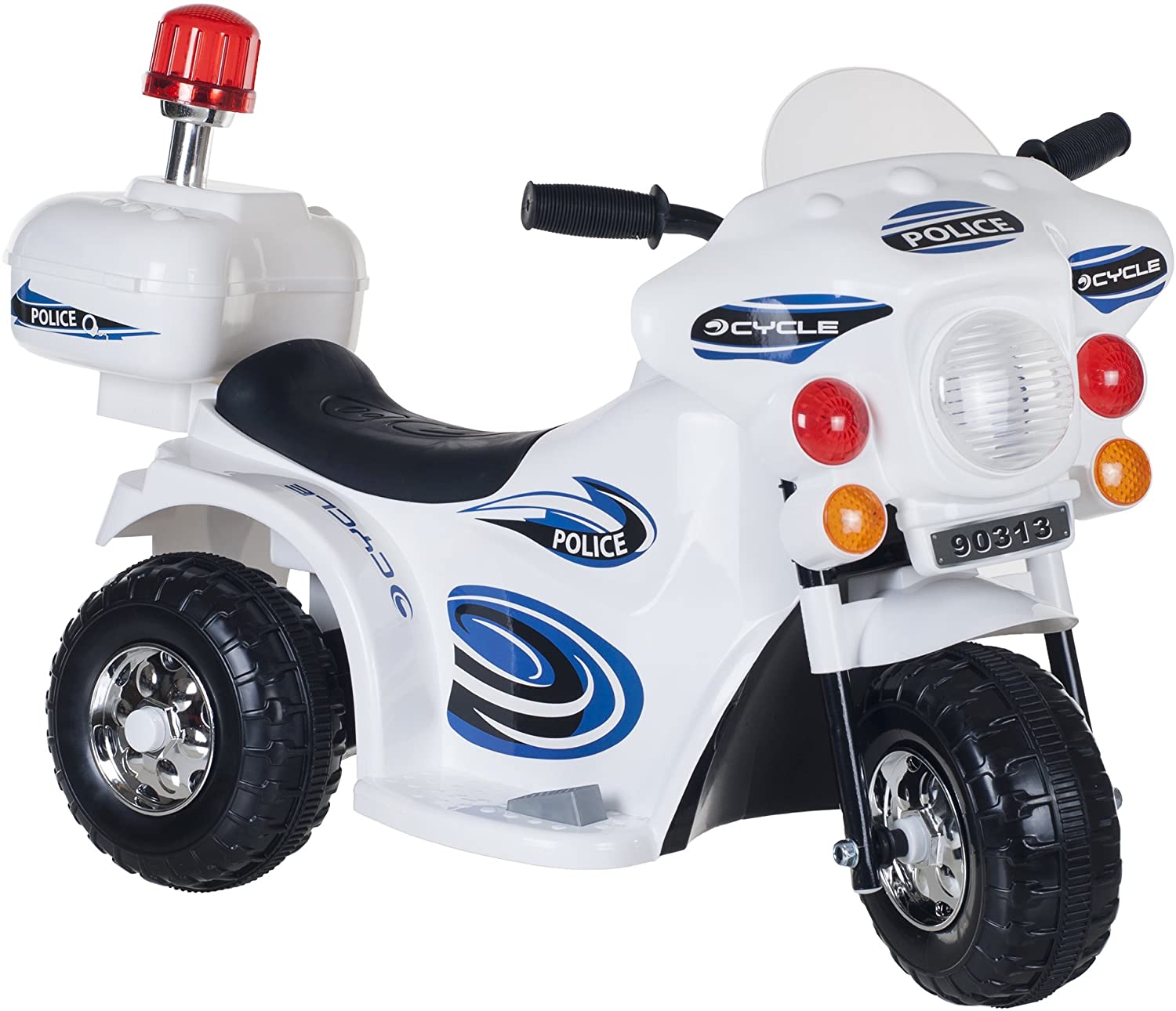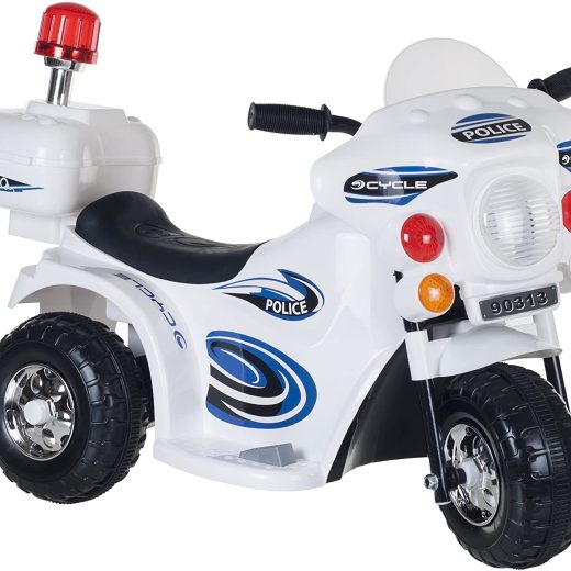 Ride On Motorcycle for Kids u2013 3-Wheel Battery Powered Motorbike for Kids Ages 3 -6 u2013 Police Decals, Reverse, and Headlights (White)