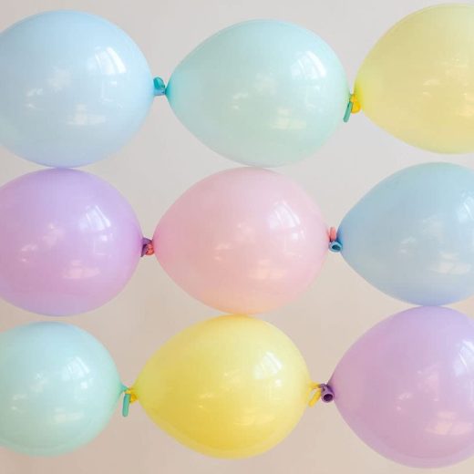 Great for All Occasions | This pastel rainbow link balloon garland is perfect for pastel birthday party decorations like unicorn birthday decorations for girls, gender reveal party supplies, baby shower decorations, ice cream decorations for birthday party, Easter balloons, or rainbow birthday party supplies & decorations. Everything You Need for Quick & Easy Setup | This balloon garland kit comes with a hand held balloon pump to make blowing up your pastel link balloons easy. These connecting balloons tie to each other to make a quick and easy balloon garland that you can hang anywhere to enhance your party decorations. Easy to Assemble Pastel Rainbow Link Balloon Garland | Mix and match the assortment of pastel balloons to create your balloon garland. Whats Included | This colorful balloon kit includes 100 x 6 link macaron balloons including pastel pink, pastel blue, pastel purple, pastel yellow and pastel green balloons, along with your balloon pump for quick setup. High Quality Pastel Latex Balloons | Our party balloons are made of natural latex. Air or Helium | These balloons can be filled with air or helium. Air filled balloons last 3 to 5 days. Helium is best for 8 to 12 hours. Endless Decoration Possibilities | Hang the balloon garland behind your dessert table, drape over your birthday party tables, or from your ceiling to cascade across the room. The possibilities are endless!
