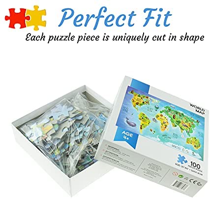 Riverbend Designs 100 Piece Jigsaw Puzzle for Adults and Kids, Colorful Children Themed Puzzle Game, World Map