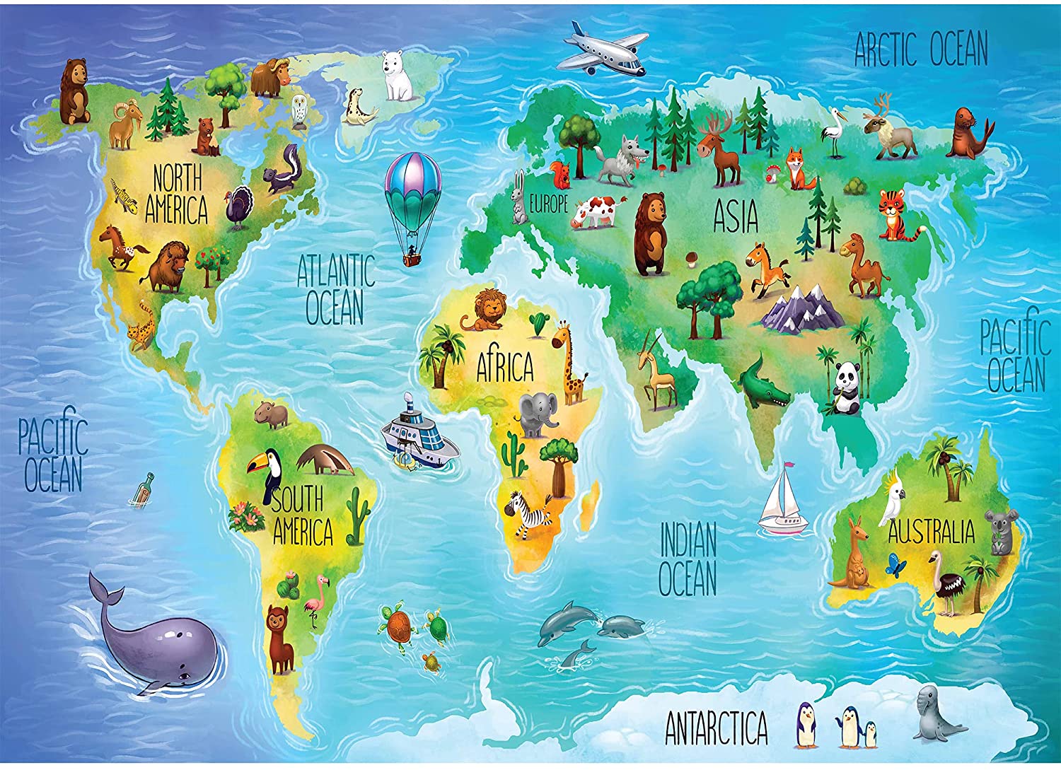 PUZZLE SIZE: This high quality 1000 piece cardboard jigsaw puzzle measures 20 in. x 15 in. (52 cm x 37.8 cm) when finished; These uniquely cut pieces guarantee a perfect interlocking fit without frustration EDUCATIONAL GAME: Let this educational puzzle activity bring you and your kids closer, while promoting fun and learning; Additionally, puzzles can improve memory, relieve stress, enhance problem solving, creativity and social skills from the comfort of your home FOR AGES 4 AND UP: Bring the spirit of learning into your home with this world map themed jigsaw puzzle, perfect for children 4 and up PERFECT GIFT: This puzzle is blazing with color and comes in deluxe packaging, making it a perfect gift for kids that you can enjoy together on their birthday and other special occasions 100% SATISFACTION GUARANTEE: We at Rivebend Designs make only crisp designs of the highest quality; For that reason, customer satisfaction is very important to us and we strive to offer the widest variety of quality products backed by our 100% money back satisfaction guarantee so you can buy with confidence