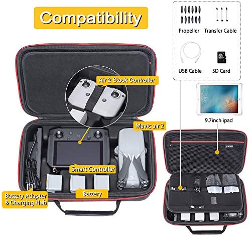 PROFESSTIONAL MADE CASE– This upmarket case is specially designed for DJI Air 2/ DJI Mavic Air 2 and its accessories.It fits perfectly for Air 2/S kit: Air 2/S Body, Air 2/S Controller or DJI Smart Controller,4x Batteries(One in Body) Charger,Propellers,Tablets and more small stuff. Note: CASE ONLY, Drone, TSA lock and accessories are NOT Included) TOP CLASS PROTECTION –Made of high-density EVA and excellent 1680D Materials, this travel case is sturdy and has specially rooms to keep your drone and accessories well organized, which provides a max protection for your air 2/S drone and smart controller out of Scratches and Shock! UNIQUE ZIPPER HEAD –Compare to other drone cases in the market, ours provides a better protection for your drones. As a gesture to security, this case is featured with the unique lock holes on the zipper heads,which allows you to put your own TSA lock on it. Note:It fits lock shackle under diameter 3.5mm, and the TSA lock is Not included. Flexible EVA Supporting–This case is versatile.The bottom comes with a removable tray for DJI drone and its accessories,which allows you to storage other large items by removing the bottom. In addition, the EVA tray could hold DJI Smart Controller or Mavic Air 2/S Controller (No need to remove the thumb stick or the lanyard) Quality Assurance — Compared to the traditional EVA, our case is made of eco-friendly materials.All our products are using qualified Materials,which Rohs certificated! Hard shell with two-year assurance.