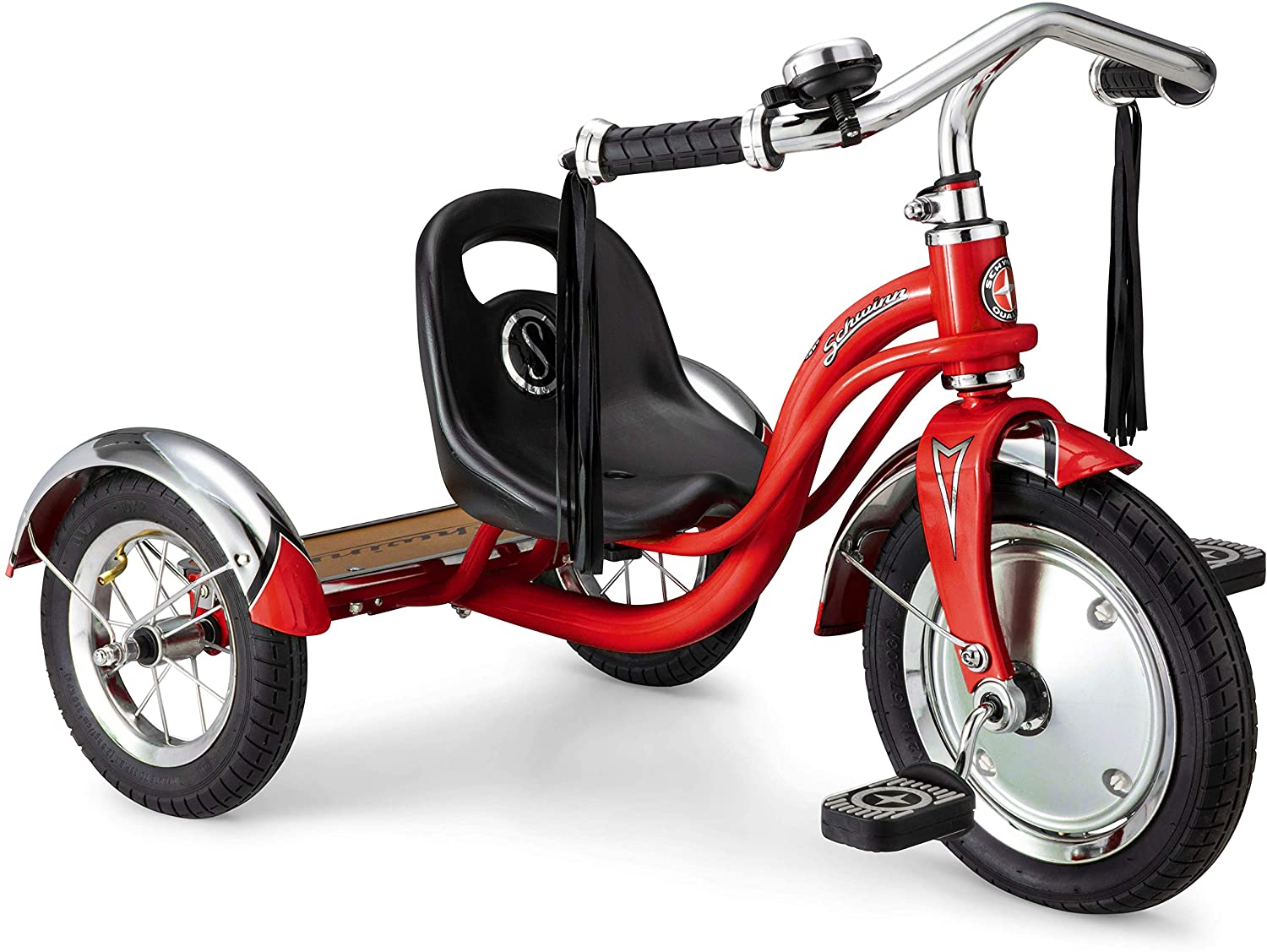 Material: Steel Tricycle;Wood Deck;Chrome Finish;Air Tires For Smooth Ride