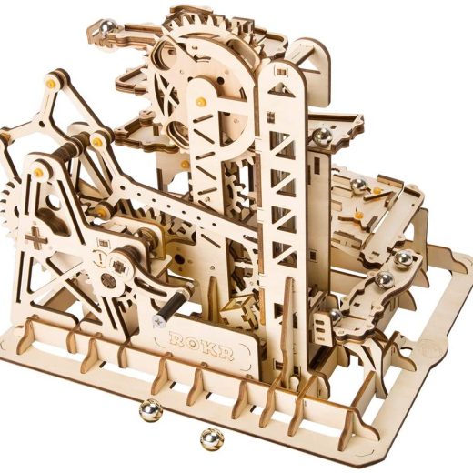 ROBOTIME 3D Wooden Puzzle Brain Teaser Toys Mechanical Gears Kit Unique Craft Kits Tower Coaster with Steel Balls Executive Desk Toys