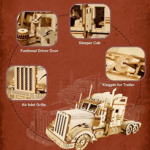 ROBOTIME 3D Wooden Puzzle for Adults Vehicle Building Kits to Build Brain Teaser Toys for Kids 1:40 Scale Model Heavy Truck